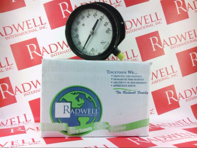 PRESSURE GAUGE 4.5 IN DIAL 30INHGVAC-100PSI 1/2IN