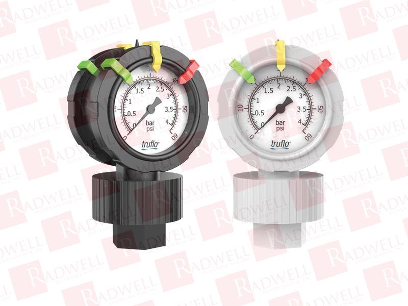 TRUFLO 2VU SERIES DOUBLE SIDED PRESSURE GAUGE & ISOLATOR | SIZE: 2 1/2" | MATERIAL: PVDF | 1/2" FNPT BOTTOM MOUNT CONNECTION | 0-60PSI RANGE | DIAPHRAGM: TEFLON | GLYCERIN FILLED