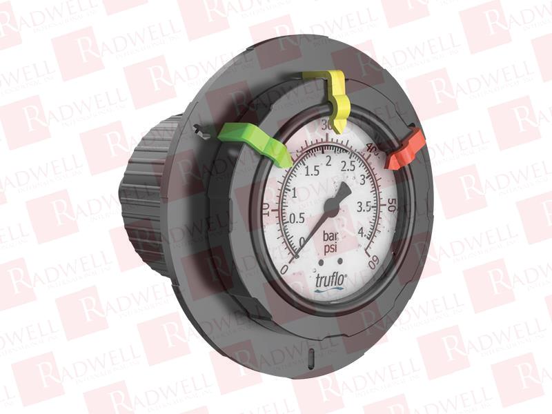 TRUFLO OBS-A SERIES PANEL MOUNT PRESSURE GAUGE & ISOLATOR | GAUGE FACE: 2 1/2" | MATERIAL: PVC | 1/2" FNPT PANEL MOUNT CONNECTION | 0-100PSI RANGE | DIAPHRAGM: TEFLON | GLYCERIN FILLED
