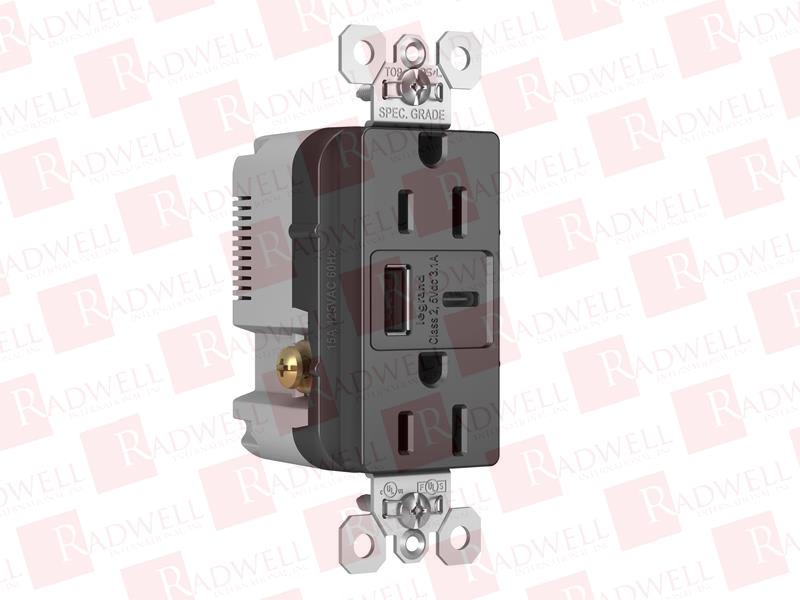 15A 125V DUPLEX TR RECEPTACLE + USB A USB C 3.1A BLACK