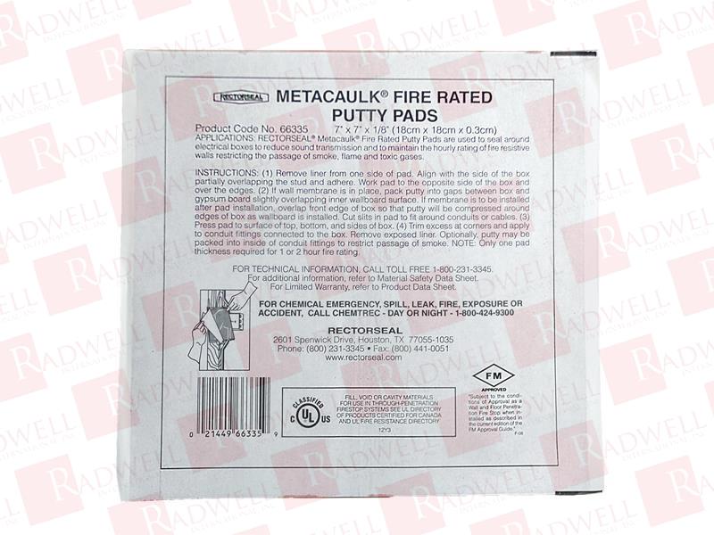 PUTTY PADS ARE USED TO MAINTAIN THE HOURLY RATING OF FIRE RATED WALLS CONTAINING ELECTRICAL OUTLET BOXES AND TO REDUCE SOUND TRANSMISSION.