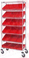 (18) 17-7/8"L X 11-1/8"W X 4"H RED BINS (QSB110) & (4) 5" SWIVEL POLYURETHANE CASTERS (2 WITH BRAKES)